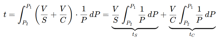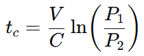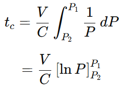 - S ≪ C の場合、Seff = Sとし、排気速度tは下記により導出できます。