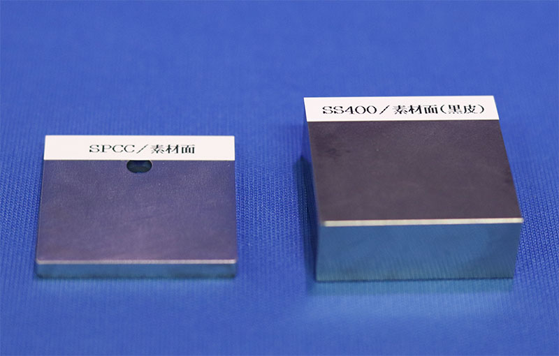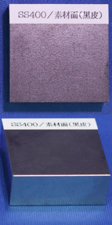 SS400熱間圧延によって製造され、表面が黒皮と呼ばれる酸化皮膜に覆われたものと、黒皮を除去したミガキ材などがあります。真空装置では主に焼付塗装を施し、架台などの構造部材に使用されます。SSはStructural Steelの略で、400は引っ張り強さが約400MPaであることから、その名前が付けられました。 |